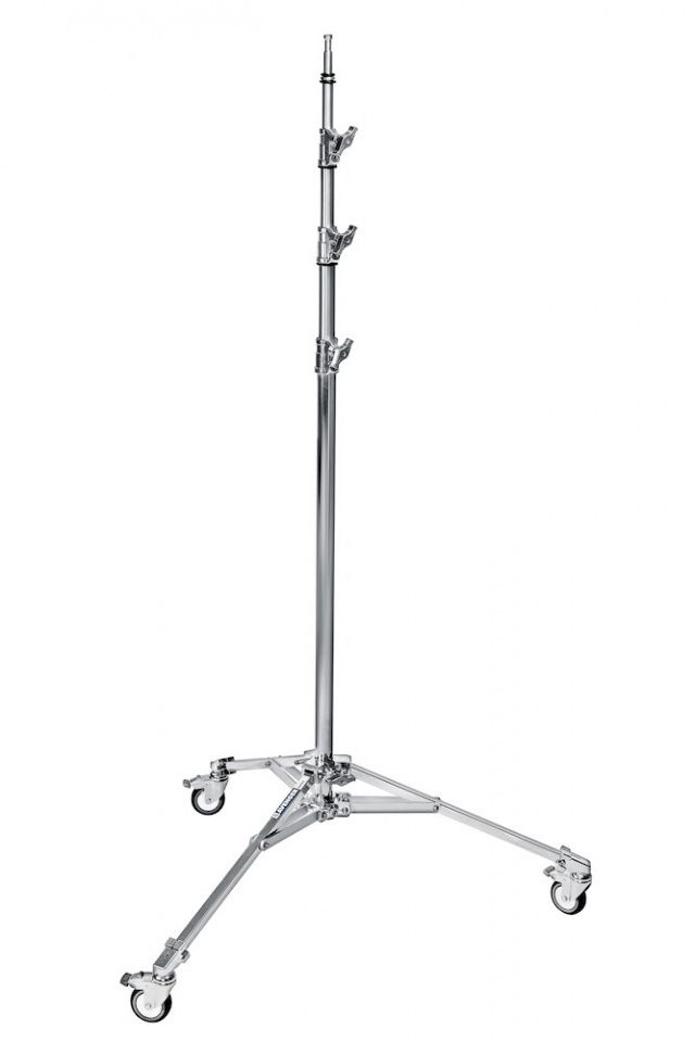 Avenger baby stand cu role A5043 cu baza joasa este un suport cu triplu. Baza si coloana inferioara sunt realizate din otel cromat, iar coloanele triple sunt din aluminiu. Capabil sa aiba o inaltime maxima de 430 cm/169,3 inchi, acest suport este capabil sa sustina sarcini de pana la 12 kg/26,5 lbs. Acest suport cantareste 6,3 kg/13,9 lbs! Pinul superior este un bebelus de 16 mm/ 5/8 inci si functioneaza cu toate receptoarele pentru bebelusi care se gasesc pe multe HMI-uri populare, panouri LED si stroboscopii. Rotile franate sunt livrate cu suporturi cu A5043. Accesorii recomandate: D600, G200-1, D200, D520, F830, F830TH, 163-10, 163-38, E390, F301, F300