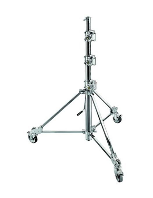 Stativ din oțel cromat, completat cu roți frânate cu 4 secțiuni și 3 montante, acest suport poate suporta o gretutate de până la 70 kg și poate atinge o înălțime maximă de 4,67 m. Include un set de suport de ancorare.