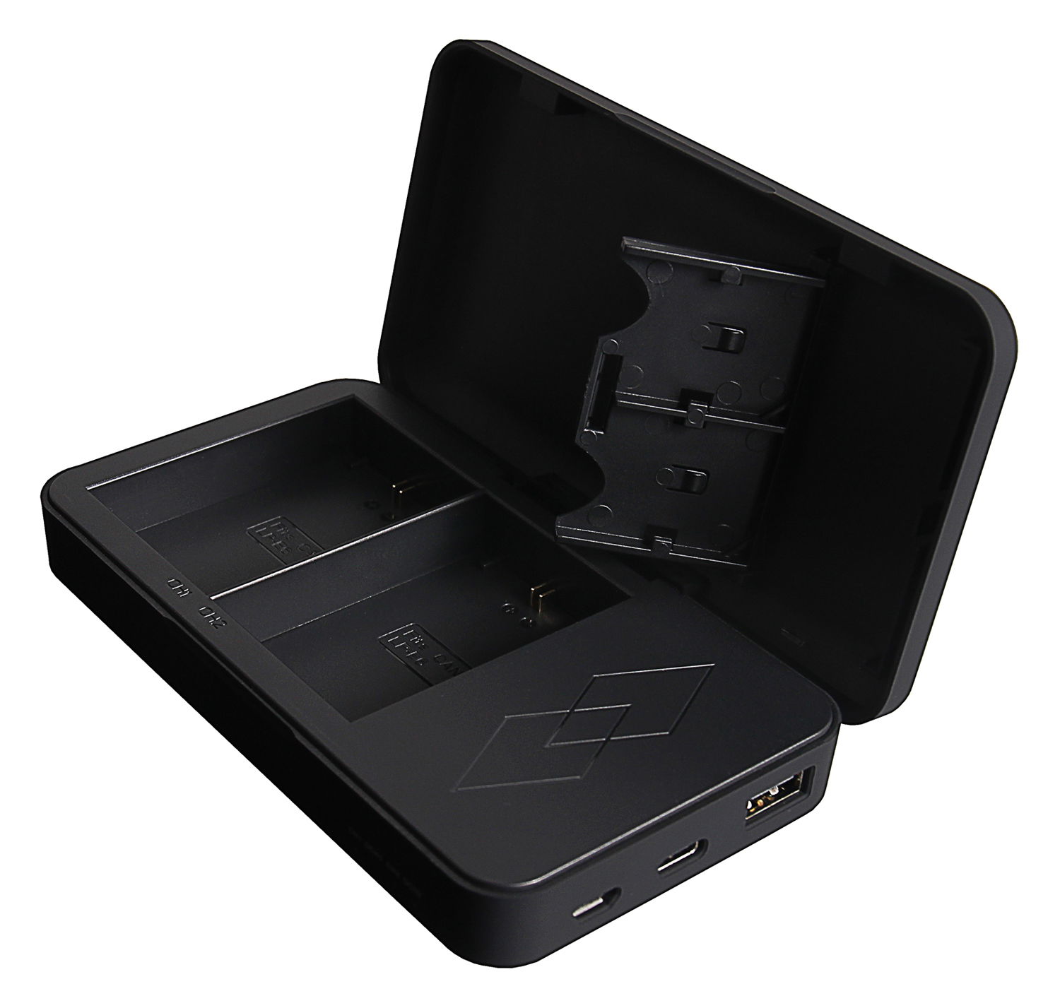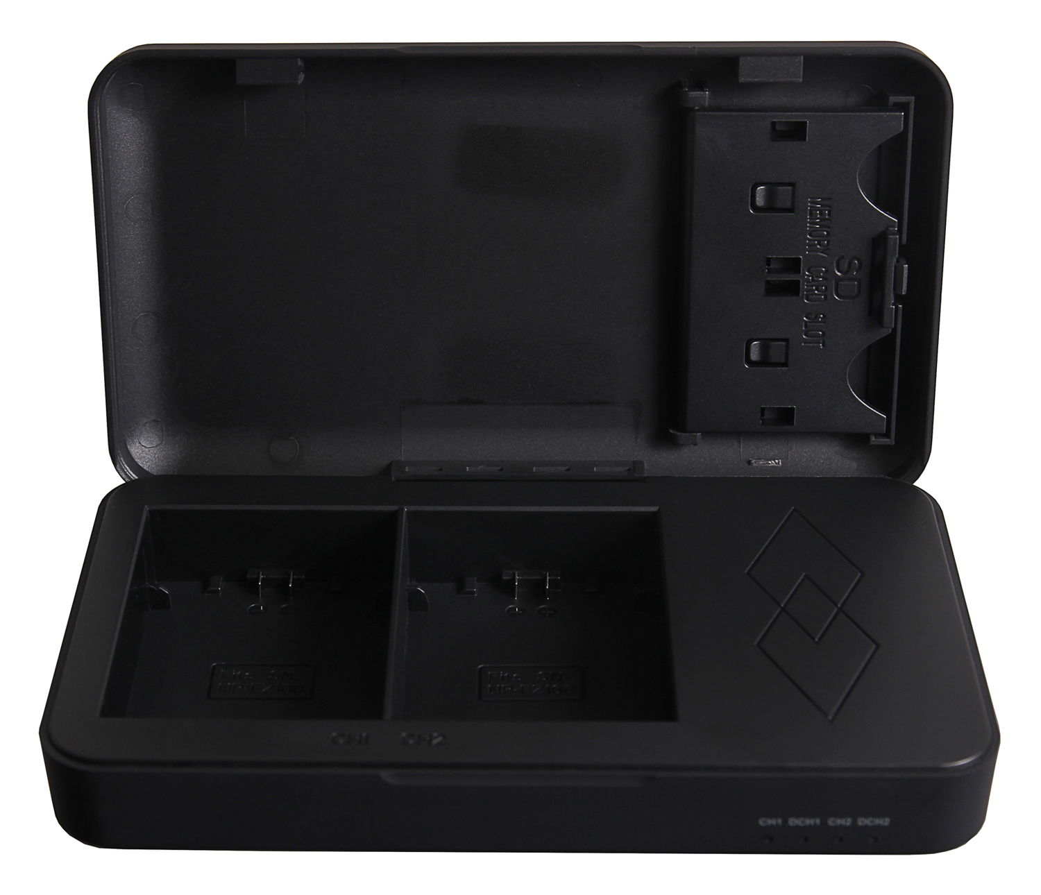 Incarcatorul dual pentru Sony NP-FZ100, cu functie de power bank si slot pentru depozitare carduri. Ofera posibilitatea incarcarii a 2 acumulatori simultan.