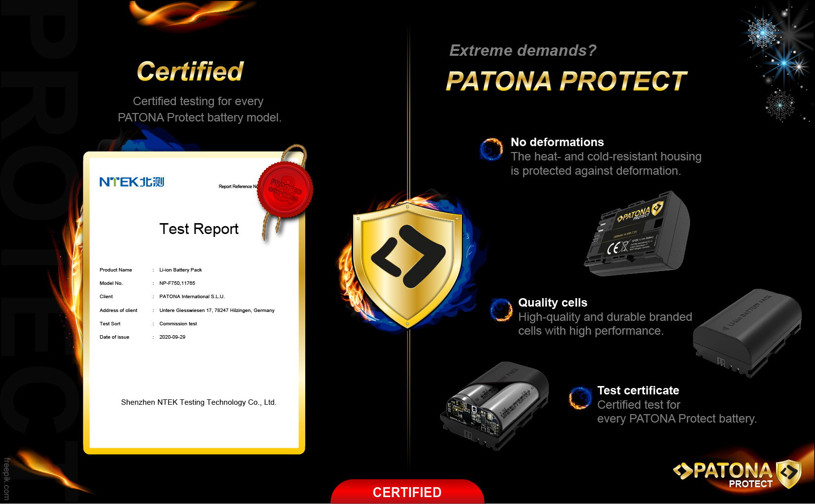 Bateriile din seria PROTECT sunt noi si exclusive pentru PATONA. Acestea sunt caracterizate de o carcasa ignifuga si extrem de rezistenta la caldura, special dezvoltata pentru utilizare continua extrema.