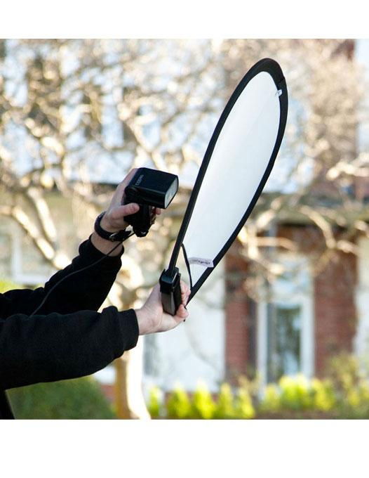 Datorita formei triunghiulare, ofera mai multa fermtate materalului, iar suportul de prindere cu care este dotat ajuta foarte mult fotograful in timpul sedintei foto, pentru a controla pe deplin pozitionarea panoului fata de subiect.