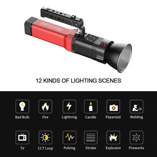 PD60B ofera efecte creative pentru simulări de iluminare, inclusiv fulgere, bucla CCT, lumanare, bec defect, TV, paparazzi, explozie, pulsare, stroboscop, foc, artificii si sudura.