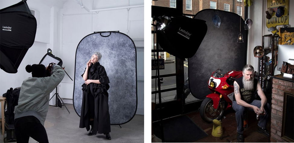 Fundalul Lastolite Smoke/Concrete permite crearea unui look vintage in studio.