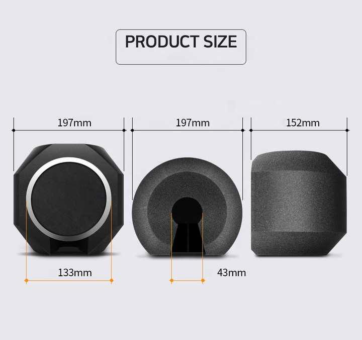 • Spuma acustica de inalta calitate: spuma de inalta densitate si durabila care absorb sunetul este utilizata pentru a filtra si absorbi zgomotul si reflexiile nedorite pentru a obtine cel mai bun efect de reducere a zgomotului si pentru a oferi un mediu linistit pentru inregistrare.