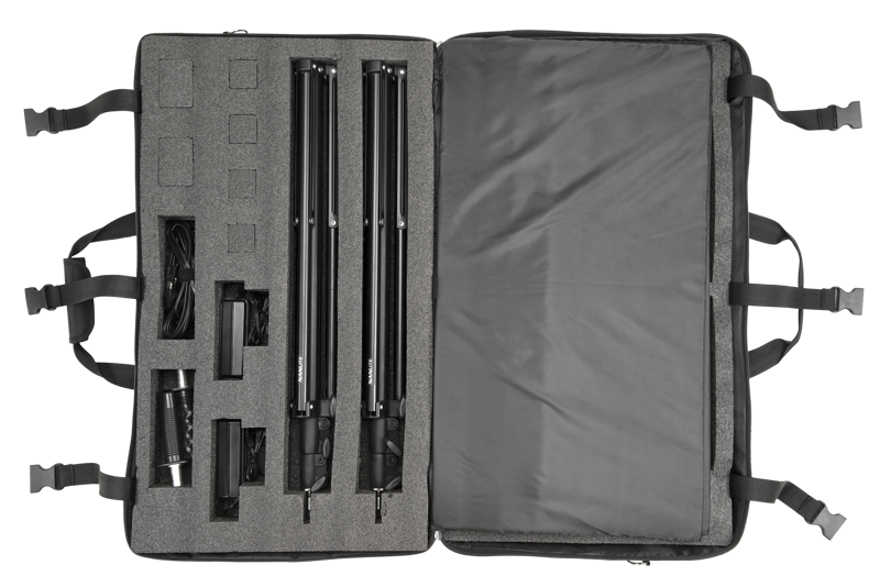 Reglaj complet de temperatură și intensitate – control al temperaturii între 3200–5600 K și dimmer 0–100%, permițând adaptarea rapidă la condițiile de iluminare ambientale sau la alte surse de lumină.