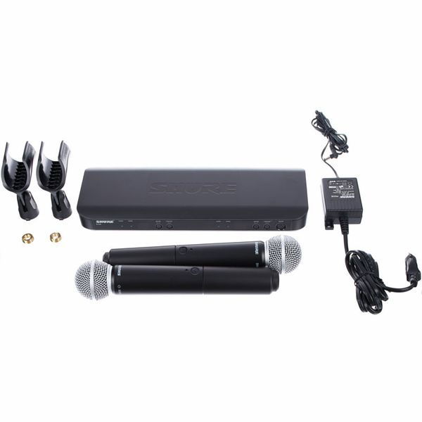 Shure BLX288/SM58 include, de asemenea, doua transmitatoare portabile, fiecare echipat cu legendara capsula dinamica cardioida SM58, un standard industrial pentru vocalisti si cranici. Receptorul dispune de o selectare a frecventei QuickScan cu o singura atingere pentru a cauta rapid 123 de frecvente disponibile si pentru a localiza un canal RF curat in caz de interferenta. Sistemul ofera pana la 14 ore de utilizare continua cu patru baterii AA, la o autonomie de pana la 300'. Pana la 12 canale de microfon pot functiona simultan in fiecare banda de frecventa.