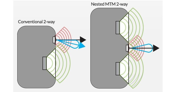 Distanta la care cele doua difuzoare de medii sunt pozitionate, este atat de larga, incat centrul lor acustic este mai mica decat lungimea de unda pe care o reproduc, astfel, semnalul redat combinat de cele doua difuzoare, este propagat ca un singur semnal, comportandu-se ca un singur driver de dimensiune mai mare. Datorita acestei configuratii, monitorul ofera o imagine stereo foarte detaliata, cu un output dinamic.