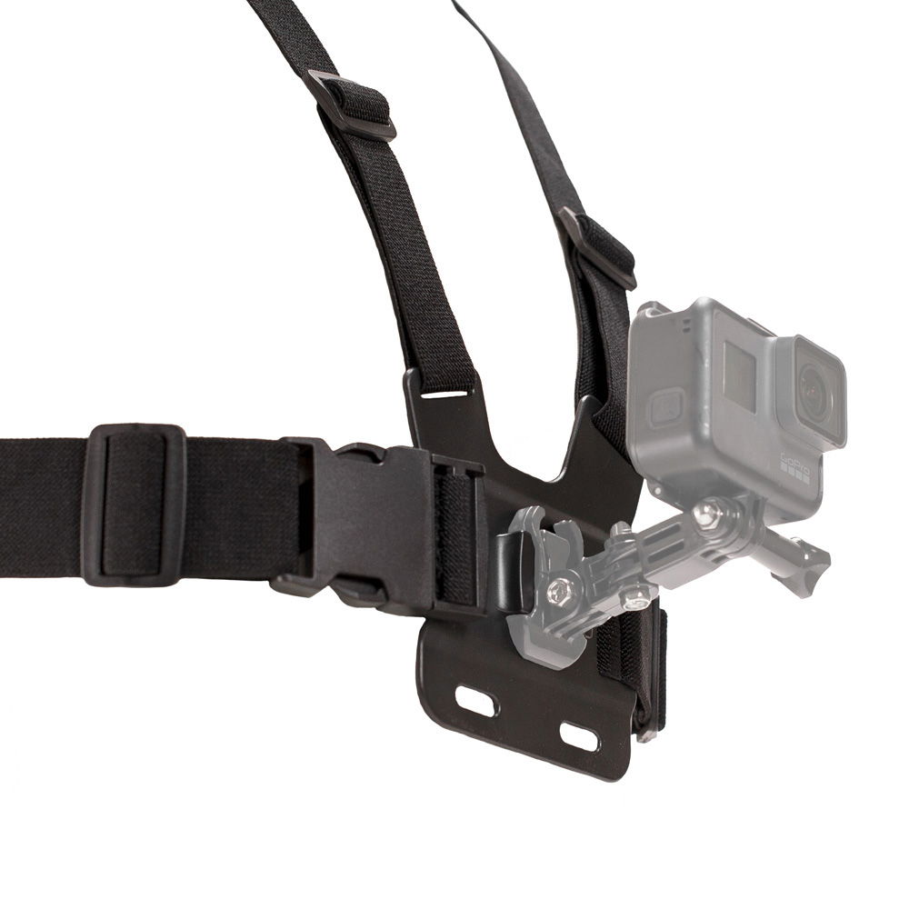 Hamul este prevazut cu o catarama solida din plastic ABS. Permite montarea camerei pe piept fiind ideala pentru filmarea in sporturi ca mountain-bike, ski, kayaking, canyoning, motociclism, etc.