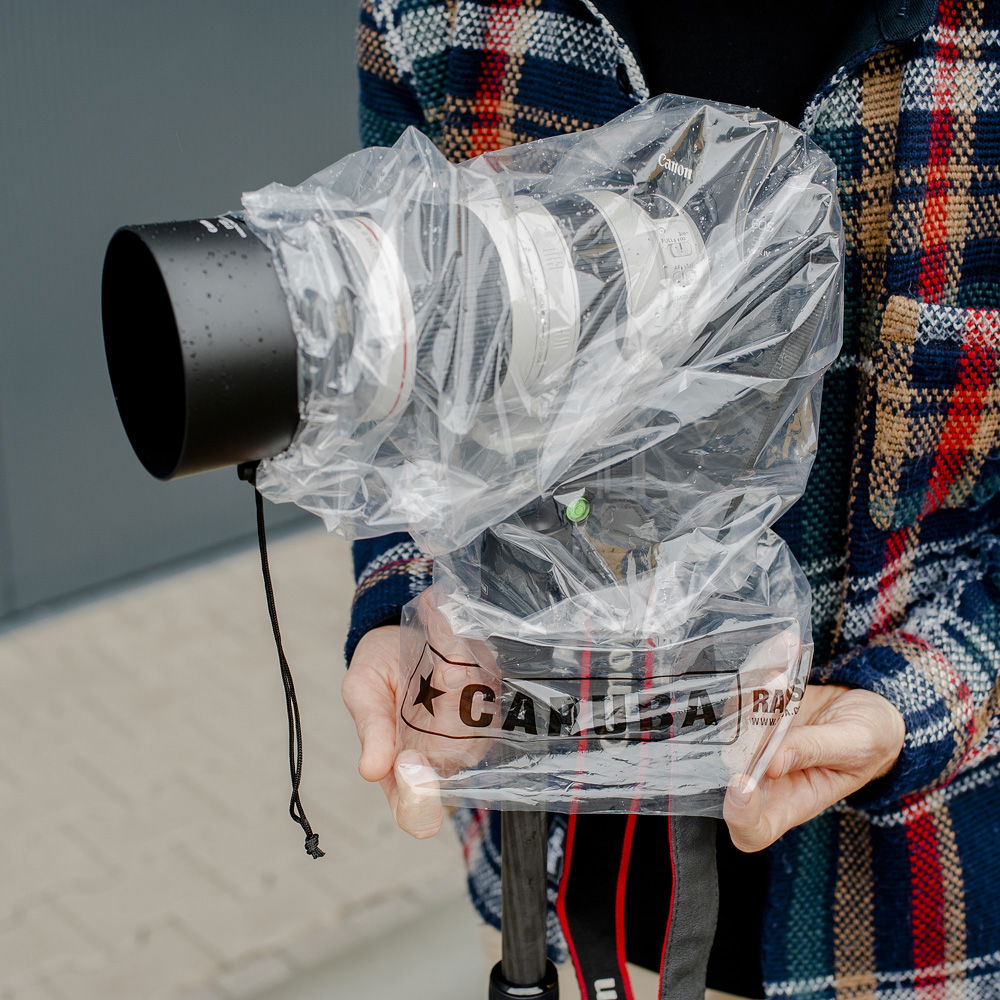 Doua huse de ploaie care va protejeaza camera de ploaie, praf si alte murdarie. Husele sunt potrivite pentru aparatul foto DSLR/Mirrorless cu un obiectiv de pana la 45 cm.
