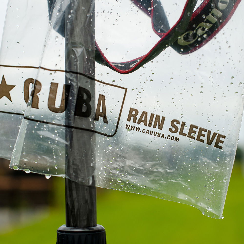 Puteti plasa camera foto cu manson de ploaie pe un trepied.