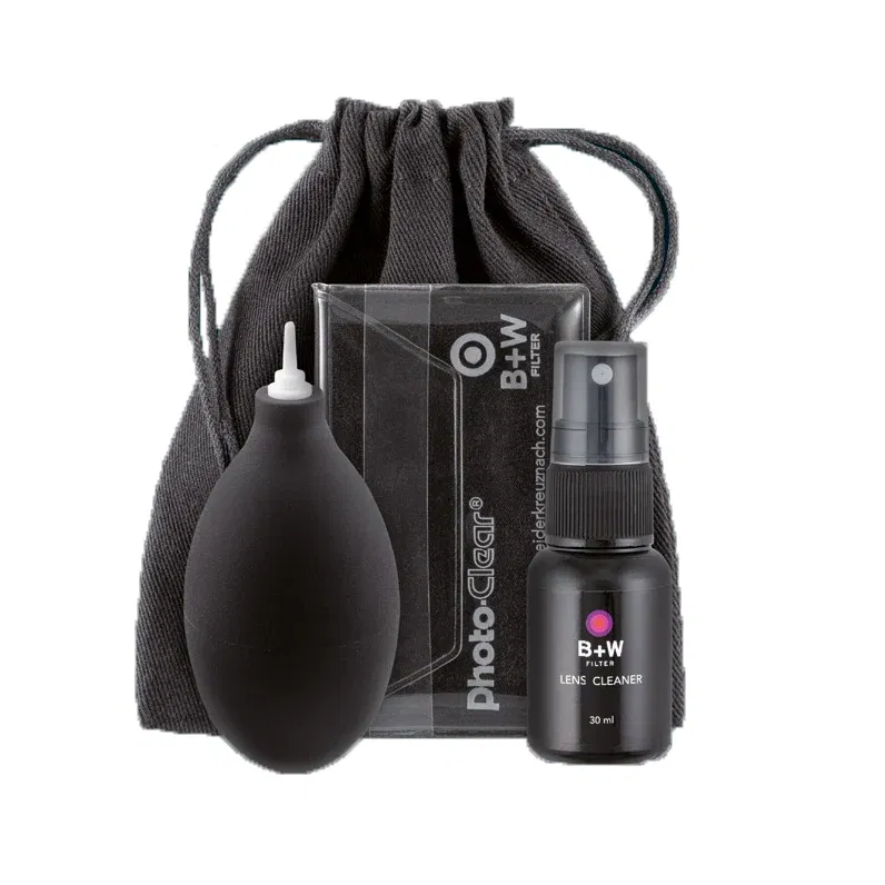 Acest kit de curatare de la Schneider B+W din 4 piese este pachetul de baza ideal pentru fotografi care au nevoie sa curete rapid si eficient suprafetele optice, cum ar fi filtrele, obiectivele si alte echipamente de camera. Este alcatuit dintr-o laveta microfibra de curatare, pompa, spray de curatare a lentilelor, sac depozitare.