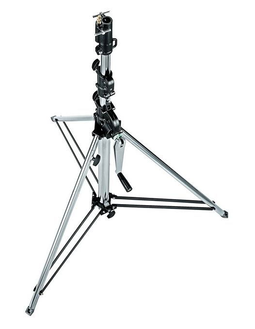 Manfrotto 087NW Wind-Up Stand este un stativ din trei secțiuni, din oțel cromat, cu coloană zimnțată [geared column] și un picior de poziționare [levelling leg].