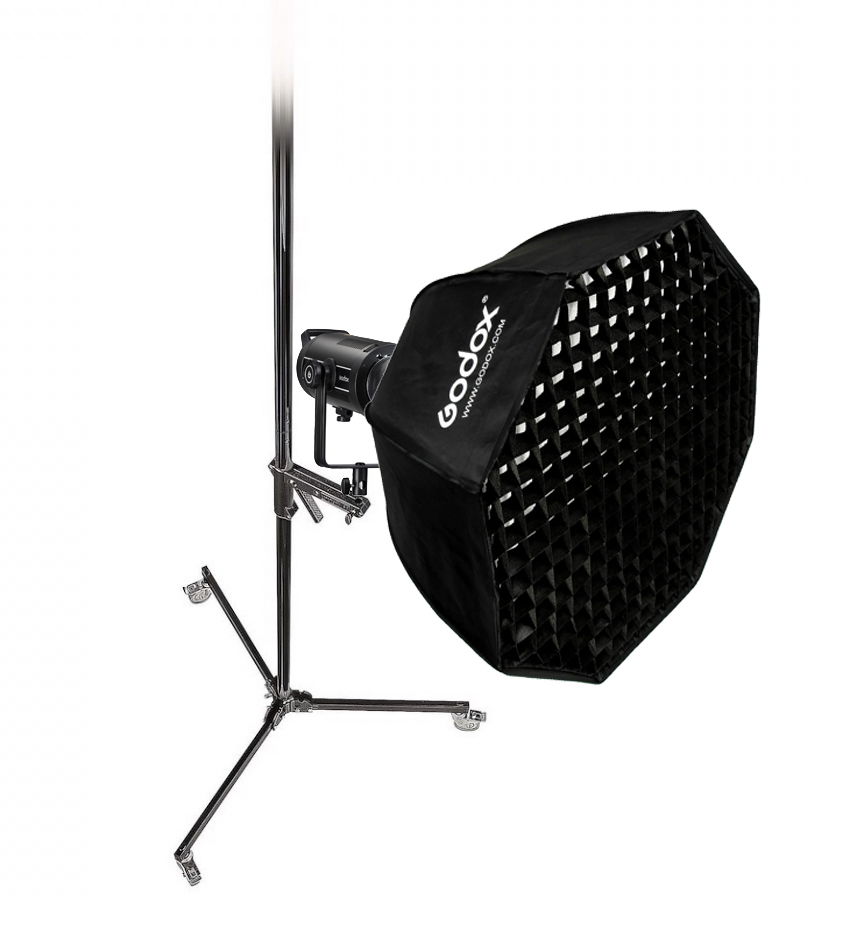 Manfrotto 231B permite coborarea luminii cu modificatorul atasat, chiar pana aproape de podea precum si utilizarea unor modificatoare de mari dimensiuni, fara a periclita stabilitatea.